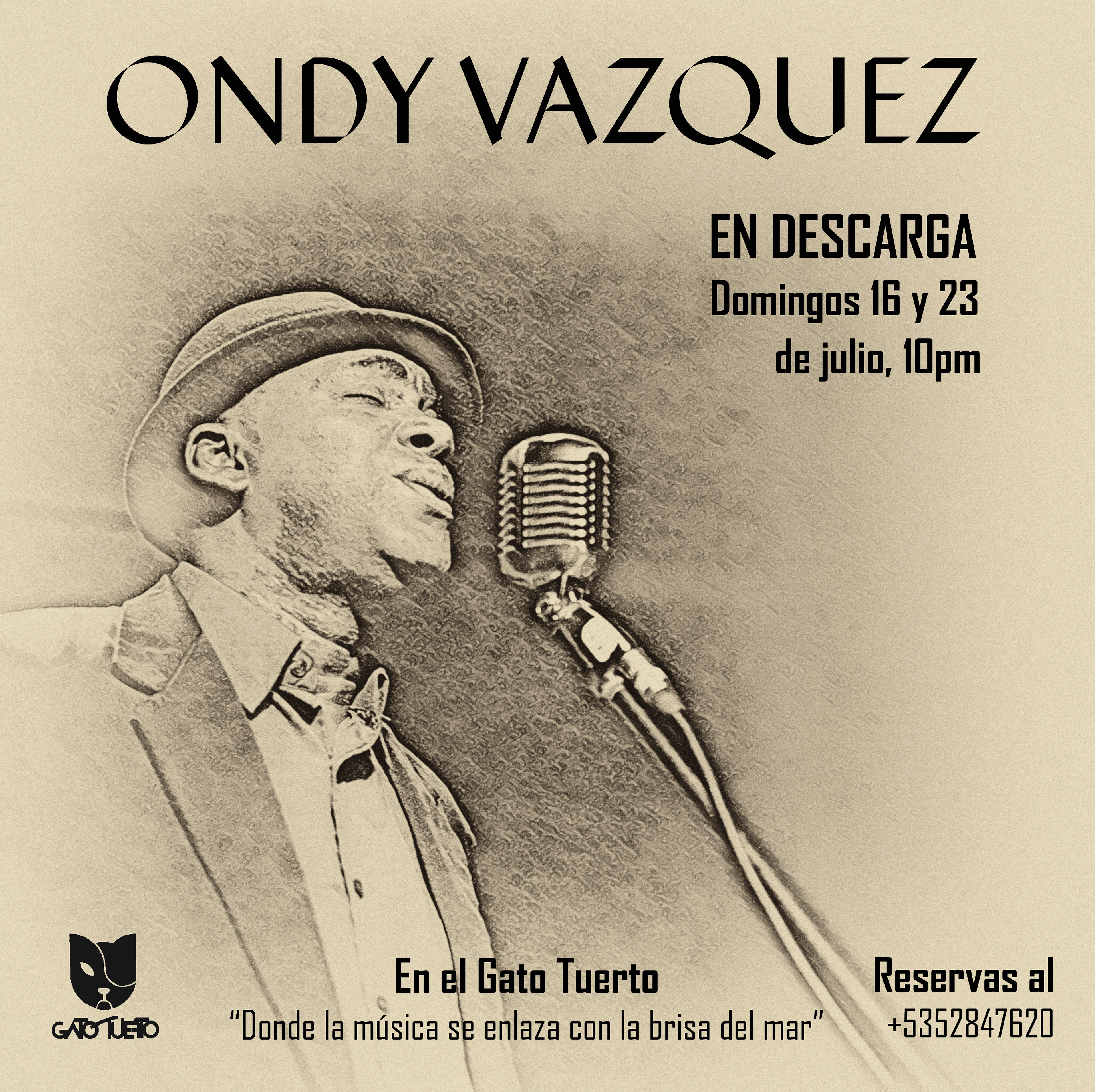 Cartel promocional de las presentaciones de Ondy Vazquez en el Gato Tuerto